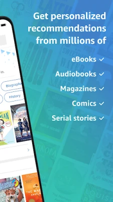 - Find your next great read with Kindle. Choose from millions of Kindle books (including books with Audible narration), magazines, audiobooks, and comics. Explore new releases, Amazon Charts best sellers, and titles across genres like romance, science fiction, children’s books, self-help, religion, nonfiction, and more—and try any book with a sample in the app before you buy on Amazon.com