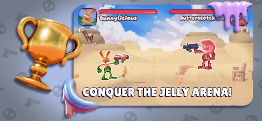 Get ready for a wild west showdown like no other in Jelly Gunfight! This zany turn-based mobile game lets you step into the sugary boots of crazy gummy cowboys locked in an epic duel.