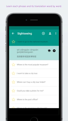 A detailed view lets you learn every Chinese / Mandarin phrase and their English translation word by word🔠.