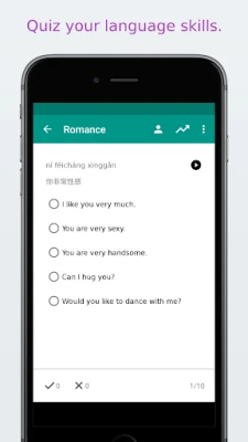 Test your knowledge with fun Chinese language quiz and review your score. After a few everyday training sessions with this app, travelers (even beginners of the language) will have everything they need for survival in China, from commonly used words (the essentials) to less known vocabulary. Either way, the app is a must-have for serious tourists!