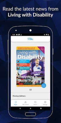 Your Living with Disability app features search functionality to find key-words relating to recent content, a zoom function to enable clearer reading of selected articles and social networking integration to keep your friends and social-circles up to date with all the latest shared news from the Living with Disability.