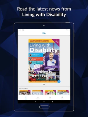 Living with Disability is a magazine to inform disabled people, their families and friends about how to access available products, opportunities and case histories, on your device, published in exceptional clarity, with an incredible touch screen experience allowing you to swipe through the magazine.