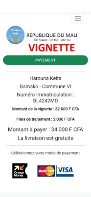 - Payer votre vignette Auto et Moto - Contrôler votre vignette - Faire une demande de duplicata Le payement se fait par Orange Money ou Carte Bancaire et la livraison est gratuite