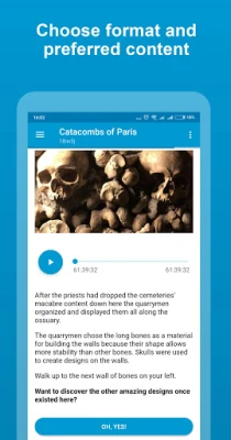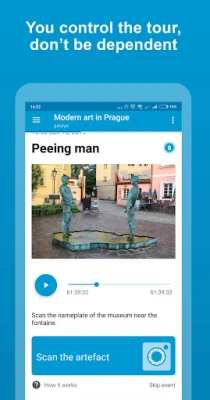 The app will show you the starting point. You can start and pause the tour at any time should you want to wander off the guided path and explore on your own.