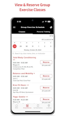 View, search and reserve group exercise classes and paid small group fitness classes.